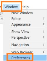 1. 이클립스 실행 후 Widow ☞ Preferences 클릭