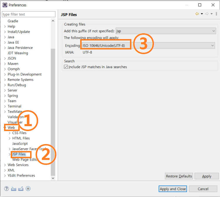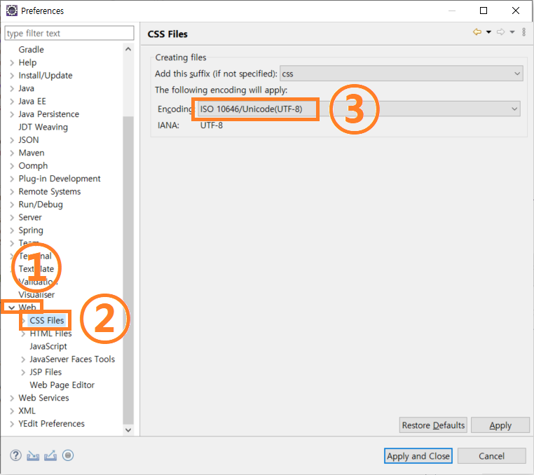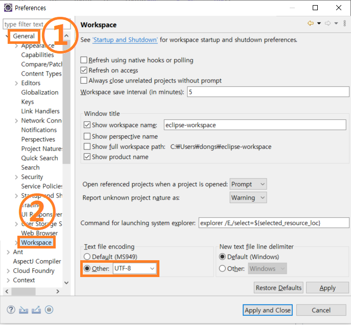 3. General ☞ Workspace ☞ Other : UTF-8 체크