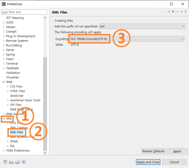 8. XML ☞ XML Files ☞ Encoding UTF-8 선택