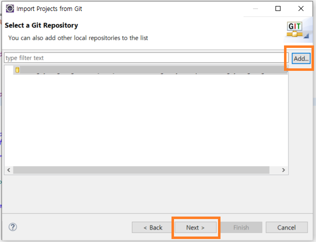 6. Add... 클릭해 아까 다운 받은 repository를 누른다!