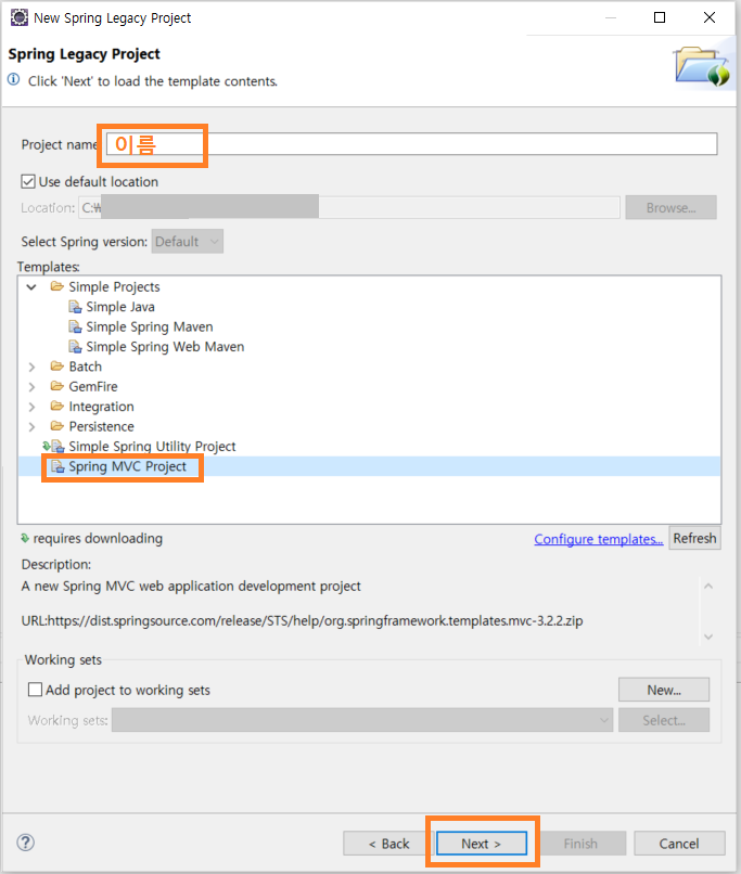 3. 원하는 프로젝트 생성!(저는 Spring regacy project, MVC)