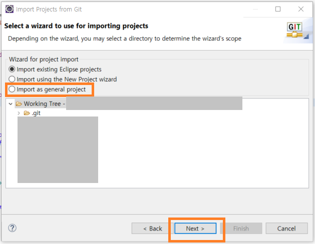 7. import as general projects 선택 후 Next 후 별 문제 없다면 Finish!